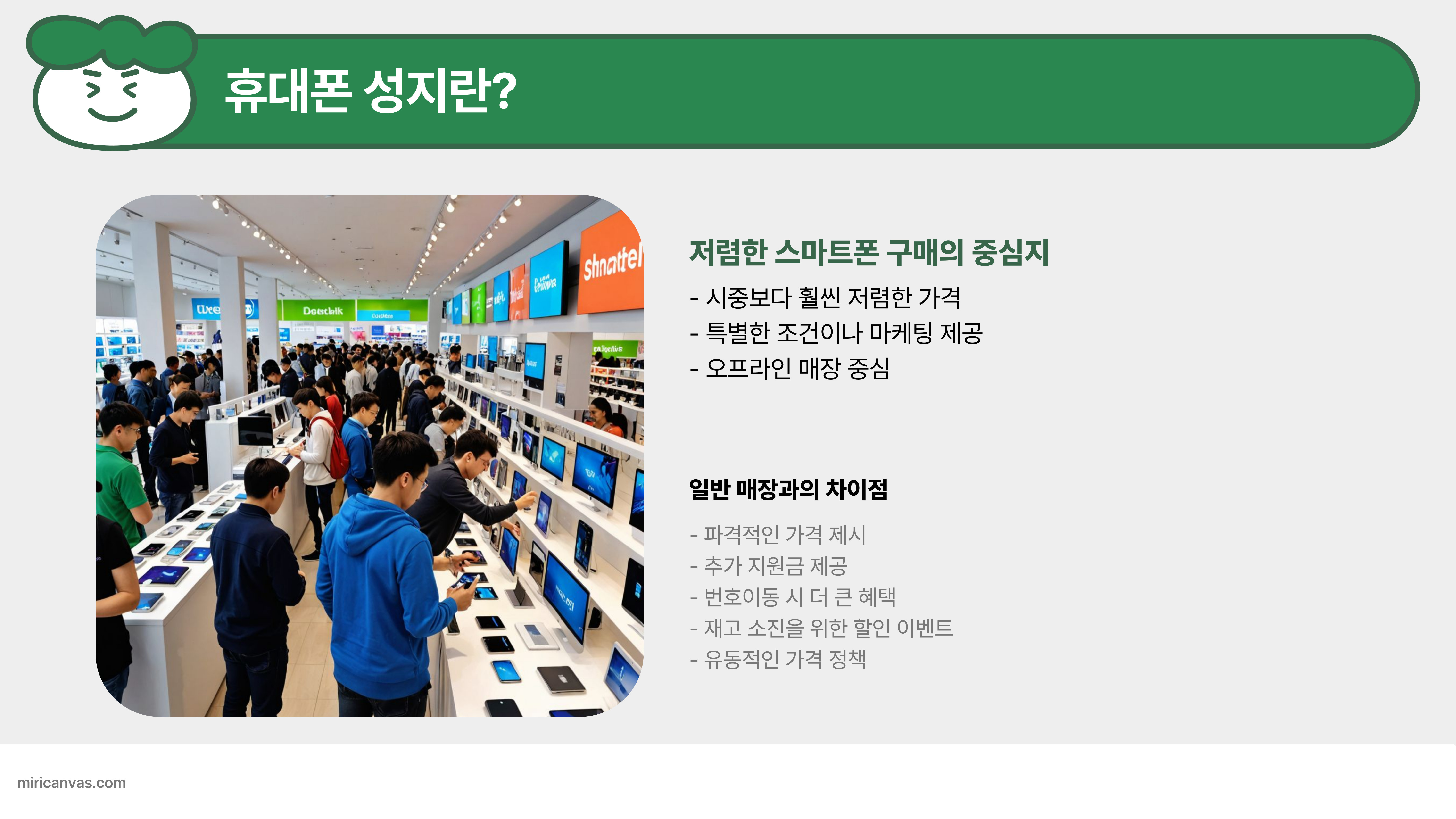 휴대폰 성지에서는 일반 매장이나 공식 홈페이지보다 싸게 살 수 있는 경우가 많은데 이유는 다음과 같아:
